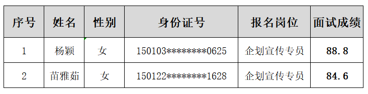 一、内蒙古欣才人力资源服务有限公司2023年公开招聘工作人员面试考试工作于2023年3月3日顺利完成,现将面试考试入围名单公示如下,同时请入围考生按要求进行体检。