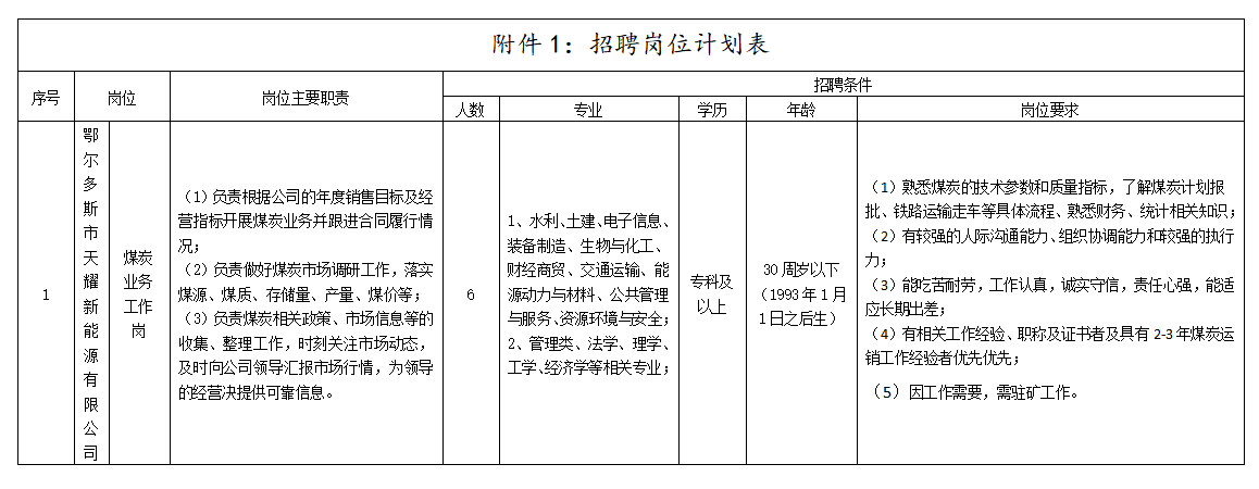 一、内蒙古天耀能源有限公司2023年社会公开招聘线上报名工作已经结束。因招聘岗位:煤炭业务工作岗,报名人数不足3:1的开考比例要求,经公司招聘工作领导小组研究,决定延长报名时间,自2023年3月15日起至2023年3月17日17:00止。