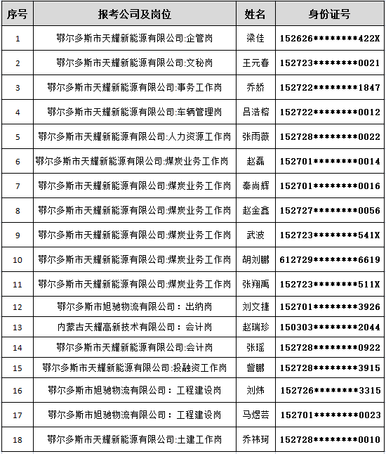 一、内蒙古天耀能源有限公司2023年社会公开招聘面试考试工作于2023年4月1日顺利完成,现将考生入围名单公示如下,同时请入围考生按要求进行体检。